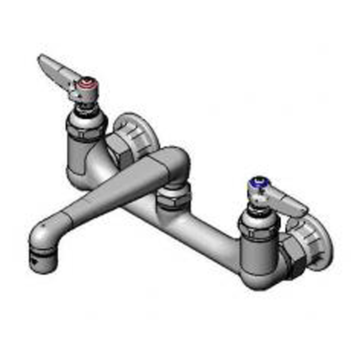 | Engineering Spec: | 8 wall mount mixing faucet with polished chrome plated brass body, 6 cast swing spout with 2.2 GPM aerator, compression cartridges with spring checks, lever handles and 1/2 NPT female inlets. Certified to ASME A112.18.1/CSA B125.1, NSF 61-Section 9 and NSF 372. Meets ADA ANSI/ICC A117.1 requirements. |