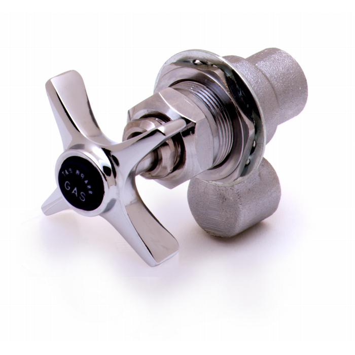 | Engineering Spec: | Fume hood valve with polished chrome plated brass body, internal stainless steel cone, removable seat, 4-arm handle and 3/8 NPT female inlet and outlet. Certified to ANSI Z21.15a/CSA 9.1a. |
